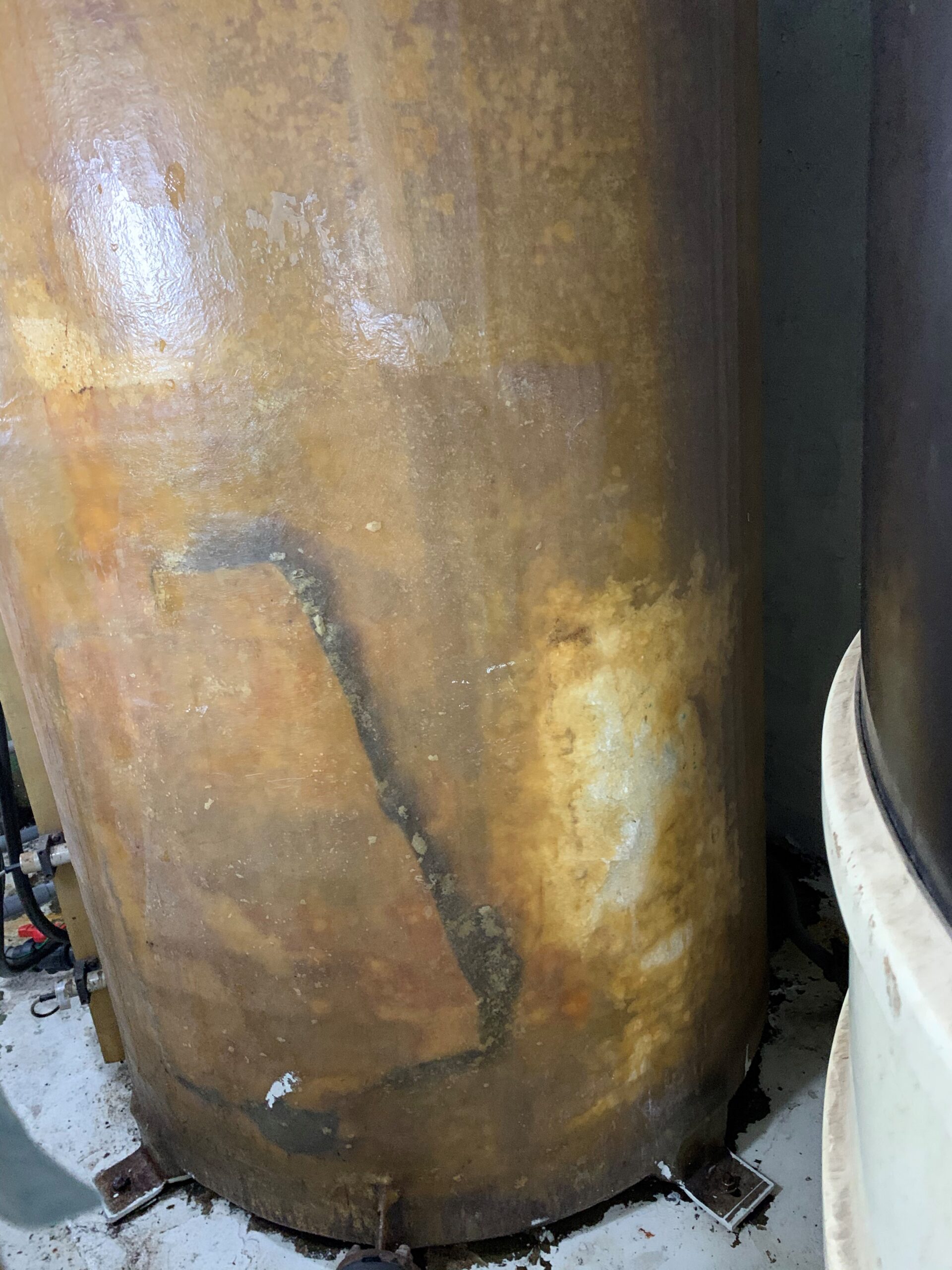 当該槽は塩酸貯槽と同様に30年以上経過していますが、地下に設置されているため紫外線による外面劣化は少ない状況です。