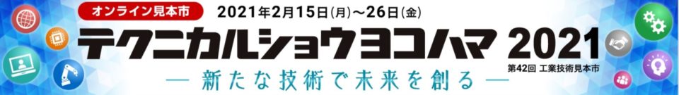 テクニカルショウヨコハマ2021オンライン見本市 ご来場への御礼 2021年2月15日より開催されたテクニカルショウヨコハマとしては初のオンライン見本市でしたが 2月26日の最終日を迎え無事に終了いたしました。 会期中にはたくさんの方々にご来場並びにセミ... -