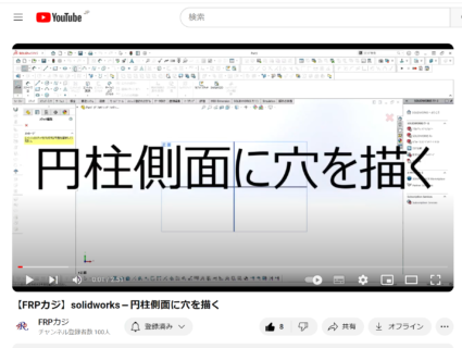 当社You Tubeチャンネル「solidworks-円柱側面に穴を描く」動画が先日1千回視聴突破しました。 今後も皆様に御覧いただける動画を配信させていただきます。 https://youtu.be/DUtjlj2GEOo?si=bP9epVOunJCT99rz -